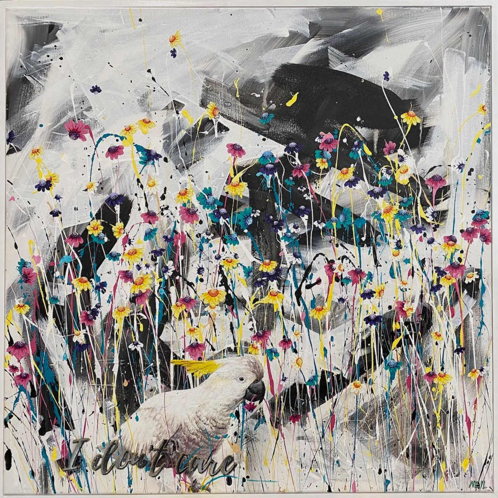 Since finishing this painting I have added to it. I was watching a cockatoo, while on my morning walk and was struck by their audacity. They have this amazing care free attitude that I thought perhaps I could learn from. This one on this particular day, it was covered in mud, and it was having a feed on the nature strip and totally living its best life. It didn’t care less about me, I walked quite close to it and it just one about its breakfast, keeping a vague eye on me, but really not to bothered by my interest in it, definitely not bothered by it being covered in mud. Maybe I could learn something from the audacious cockies.
