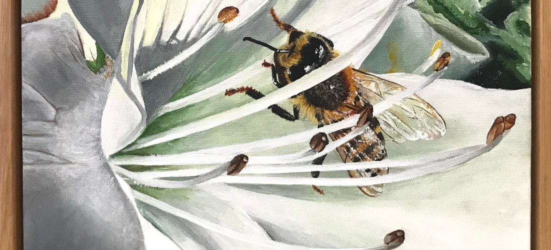 Hi Kim I’m a regular visitor to In The Picture framing at Hornsby. I know Sally (we’re at the same church) and she was telling me about you. I then saw the painting you gave Julie of the bee in the lily and absolutely loved it. I see you have done a series of these but I love the aspect of the one in the shop. I’m enquiring about whether you would paint another and if so how much it would cost; I was also interested in if you produce prints of your paintings and what they cost.