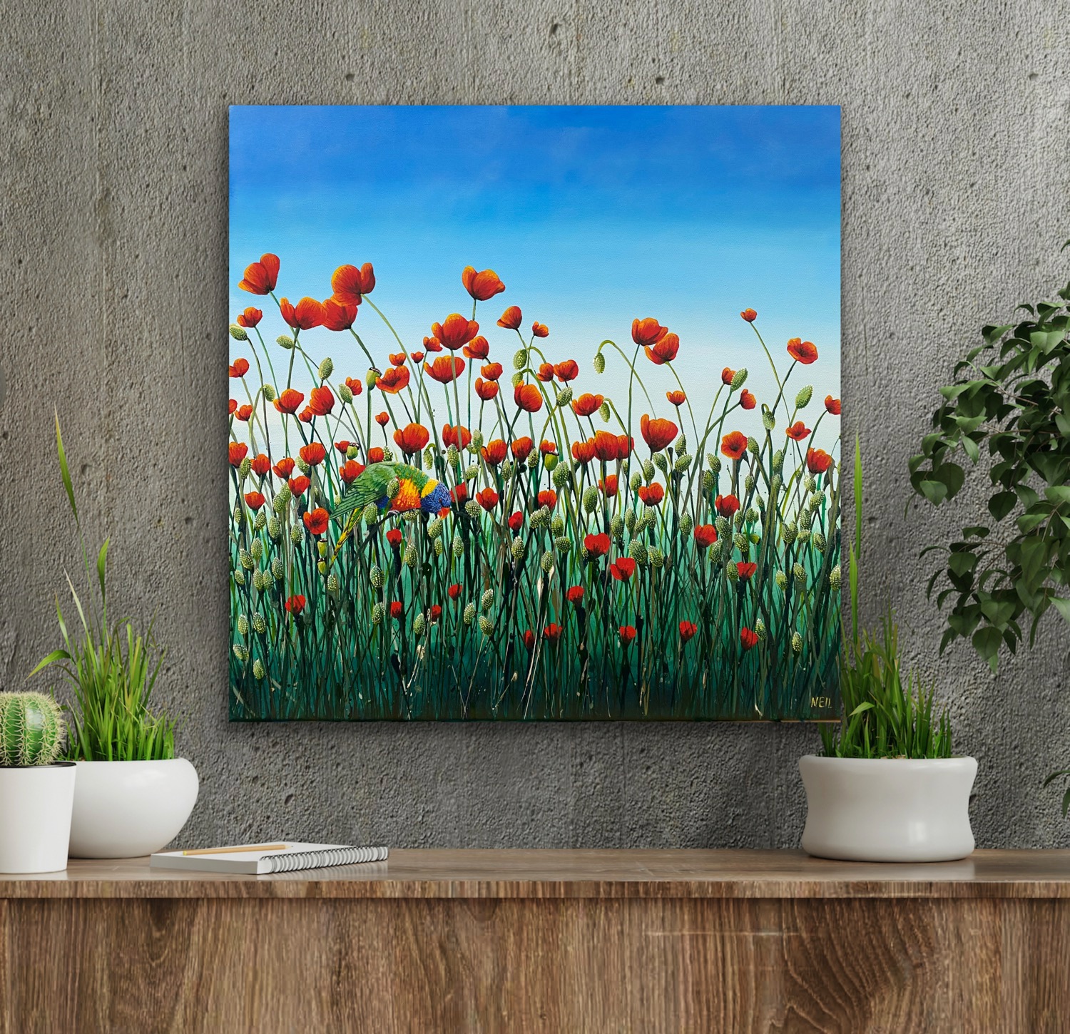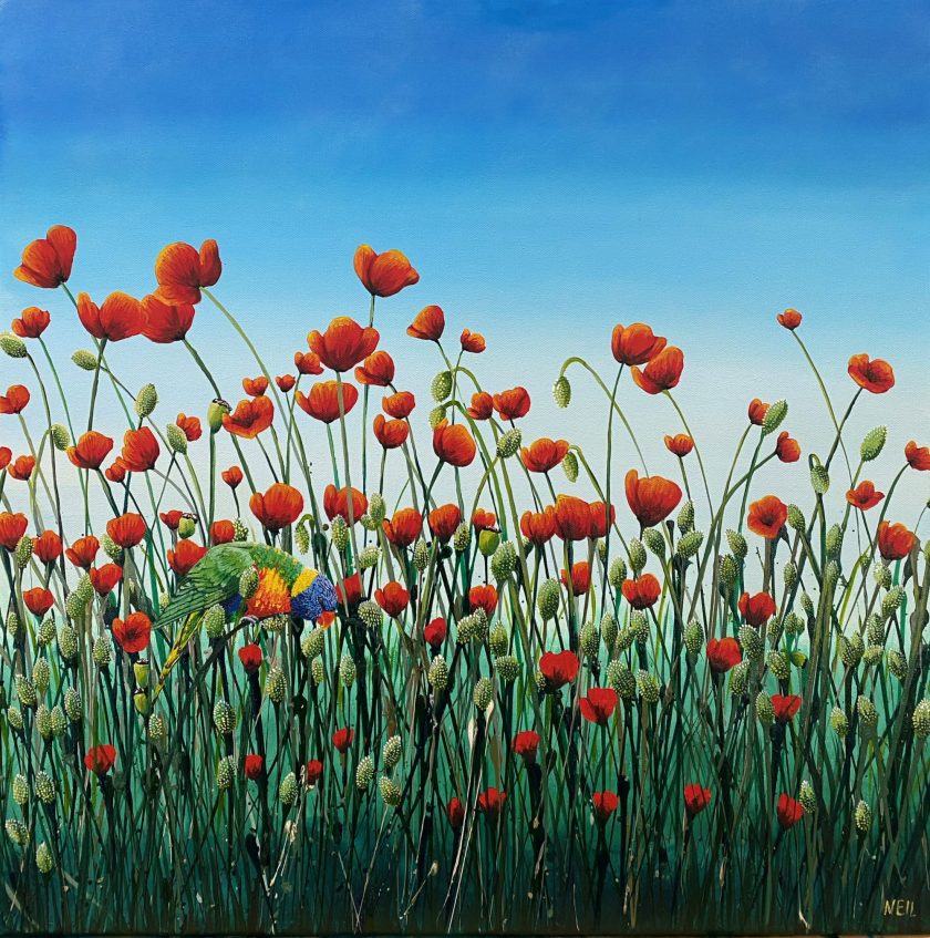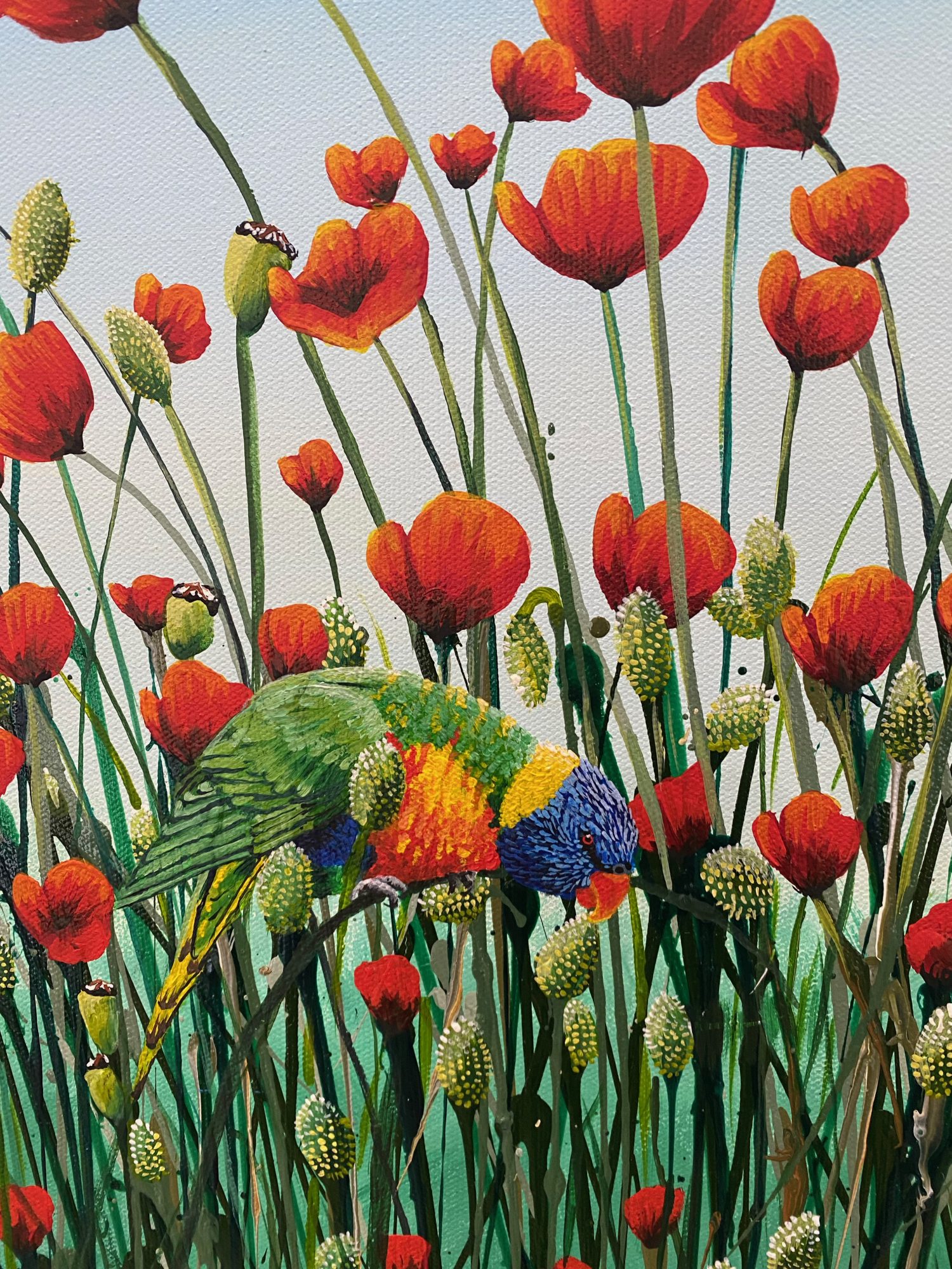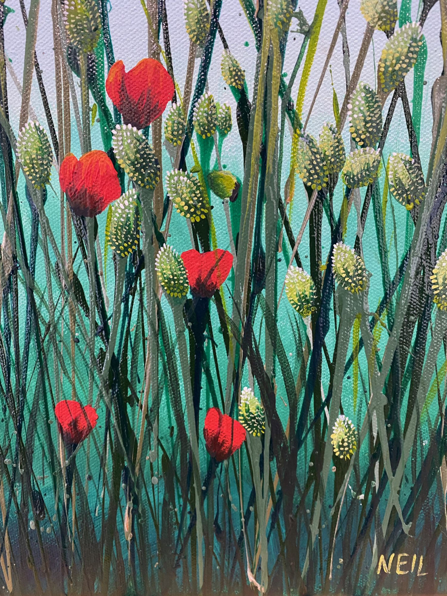 Painting these is pure joy: I literally throw paint on the canvas and then paint what the painting shows me.