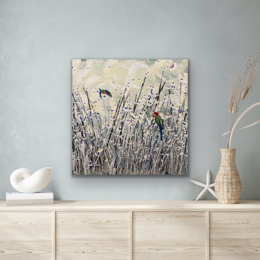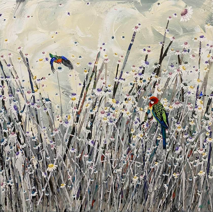 This painting has been about adapting, healing the past, looking toward hope, but seeing joy in the day to day, in the weeds that have abounded in the rain, in the rain itself, in the birds that wake me in the morning. When I stop and listen, moment by moment, I can keep putting one foot in front of another and enjoy the journey.