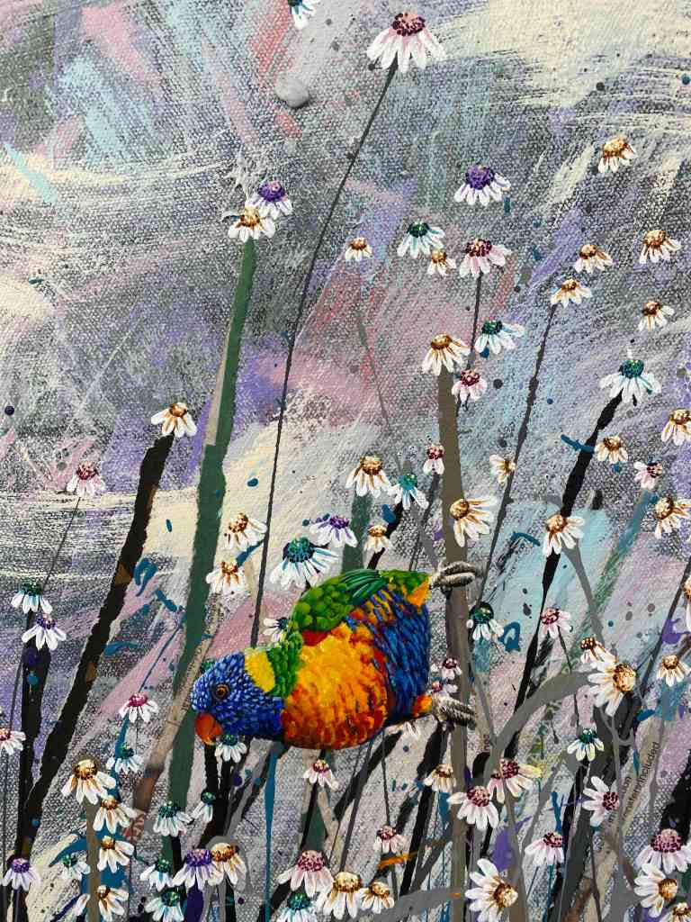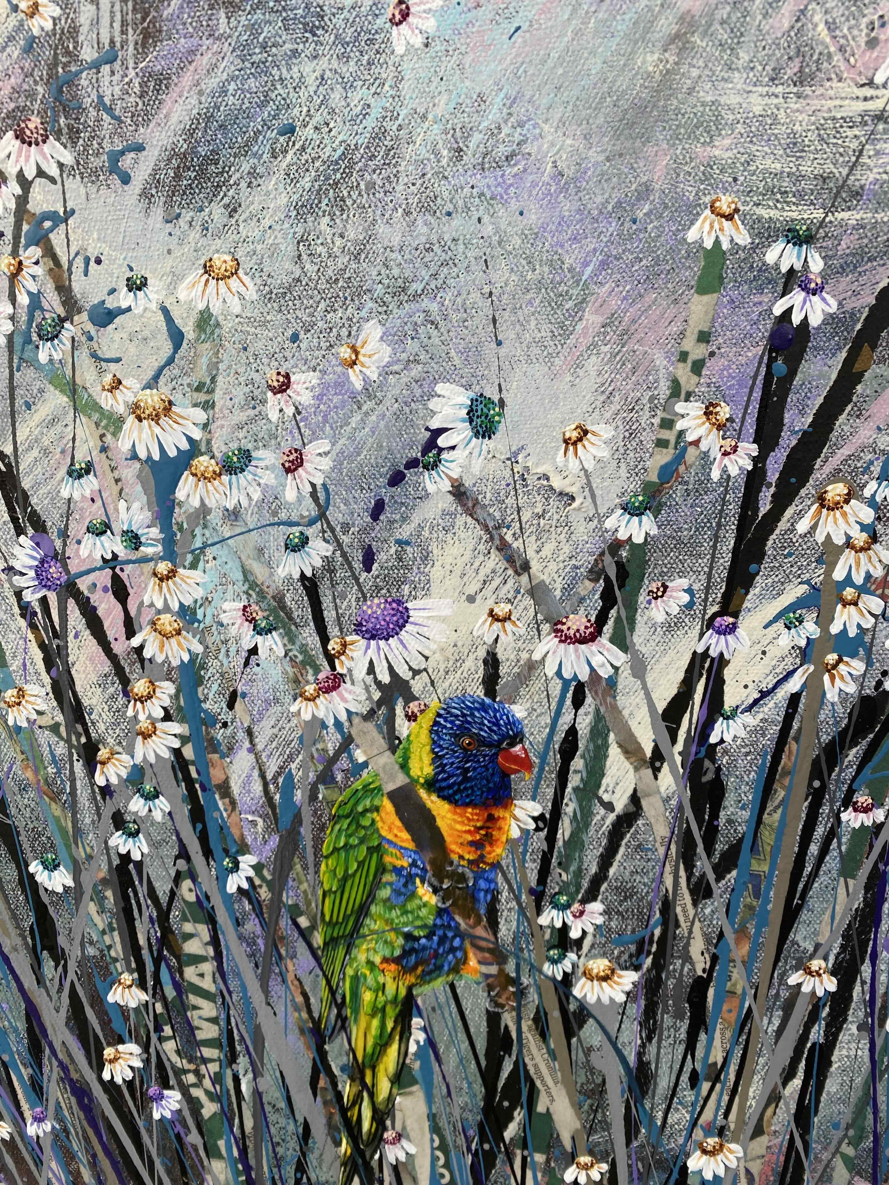 This painting has been about adapting, healing the past, looking toward hope, but seeing joy in the day to day, in the weeds that have abounded in the rain, in the rain itself, in the birds that wake me in the morning. When I stop and listen, moment by moment, I can keep putting one foot in front of another and enjoy the journey.