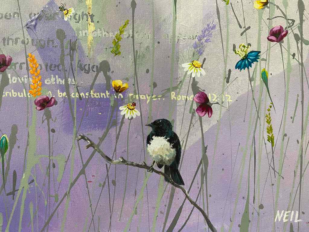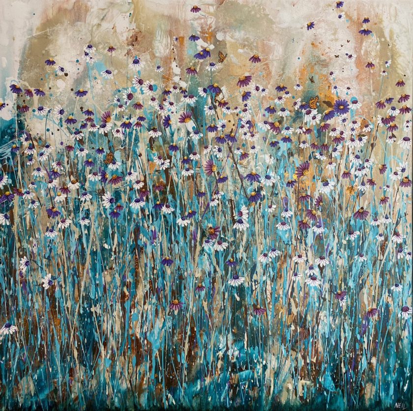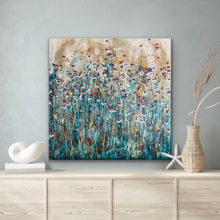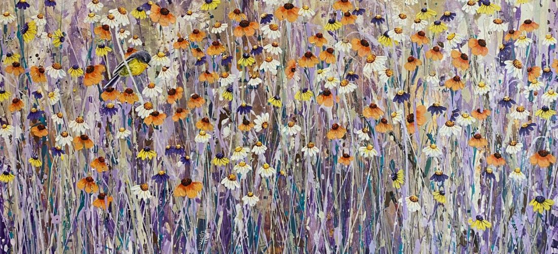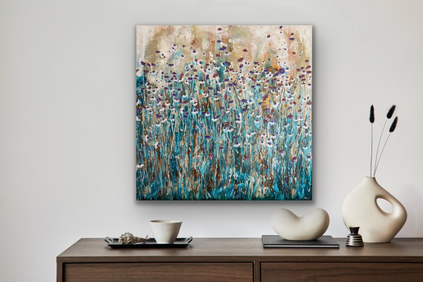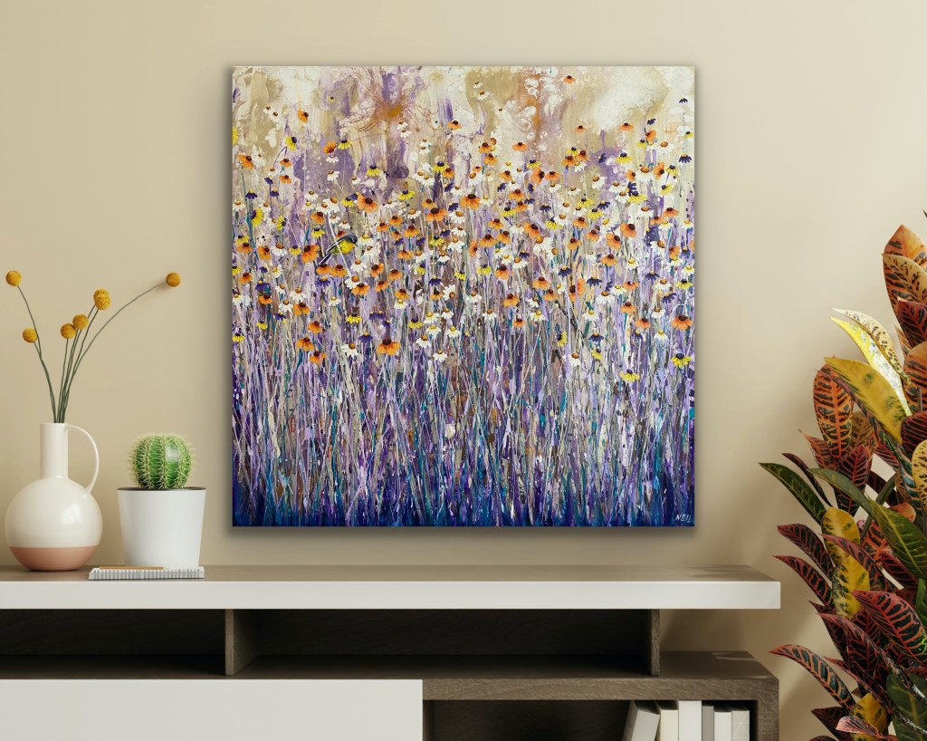 There are butterflies, bees and ladybugs hidden amongst the flowers to find. I love creating paintings that have something hidden for those who are really interested in them.