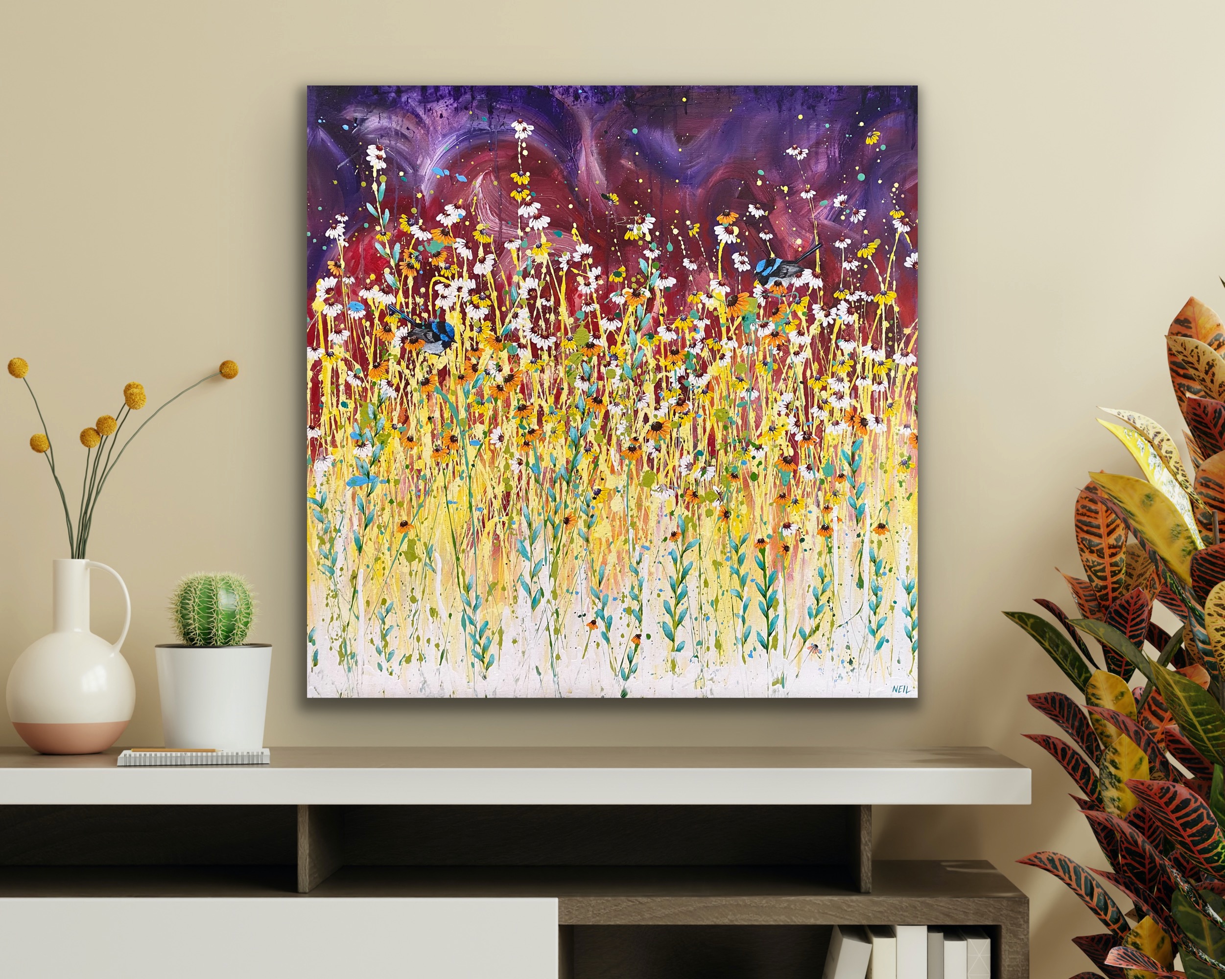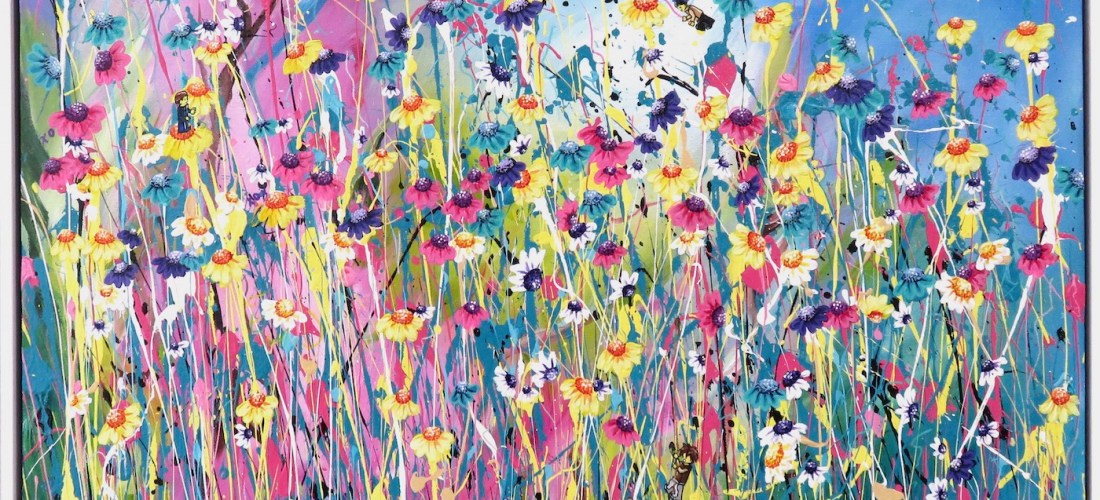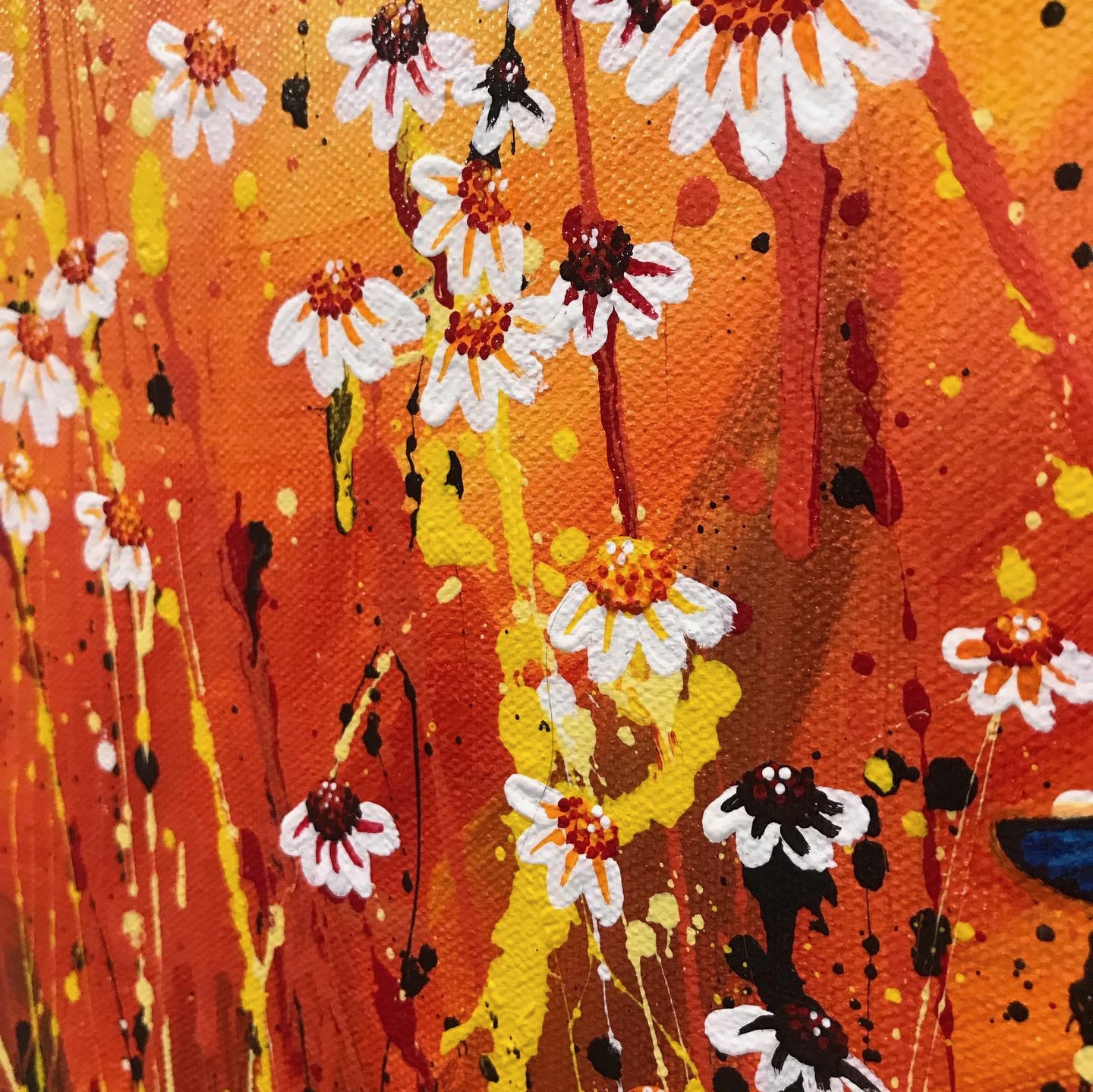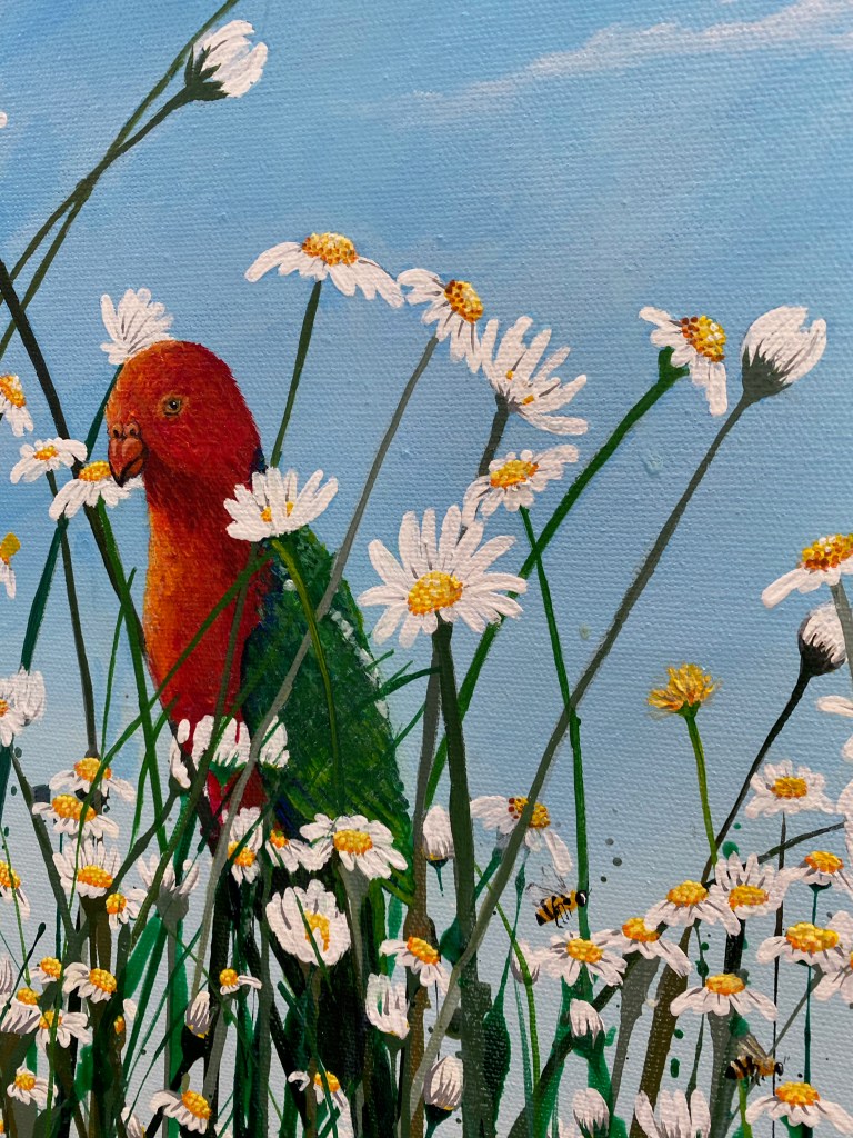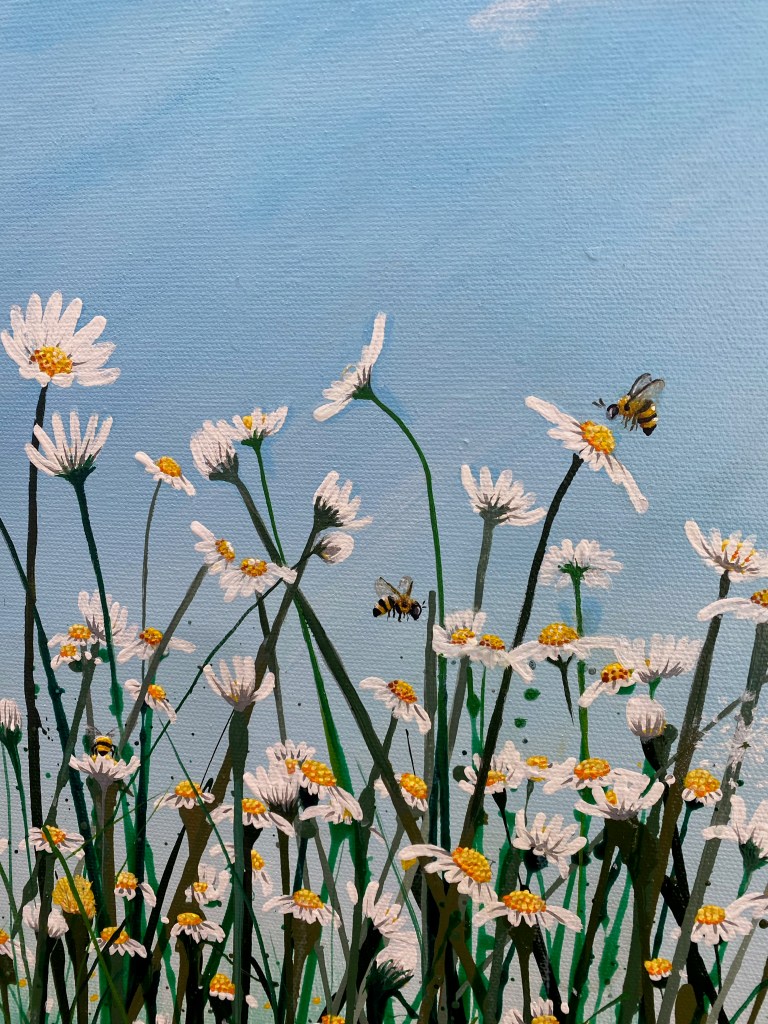 There are bees and hidden amongst the flowers to find. I love creating paintings that have something hidden for those who are really interested in them.