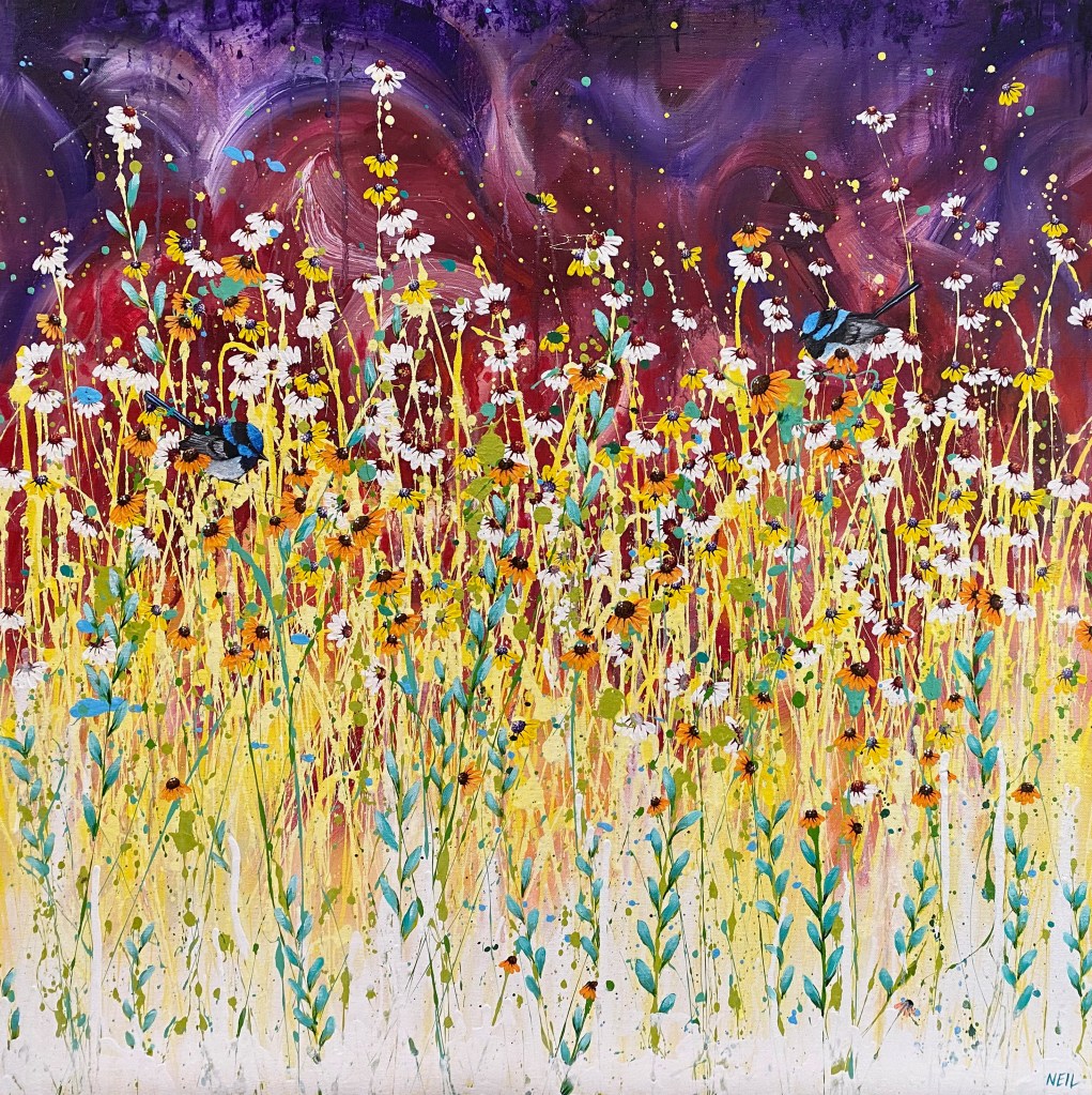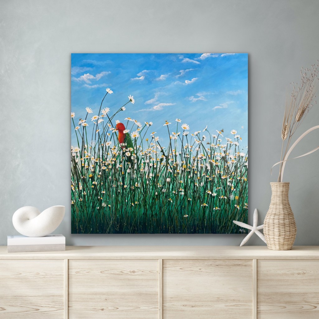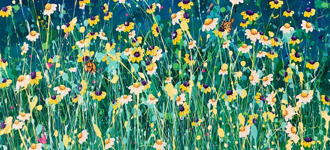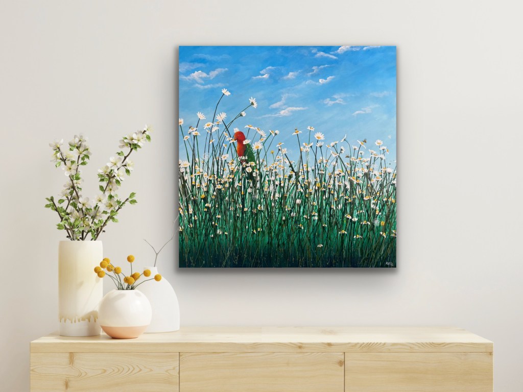 There are bees and hidden amongst the flowers to find. I love creating paintings that have something hidden for those who are really interested in them.