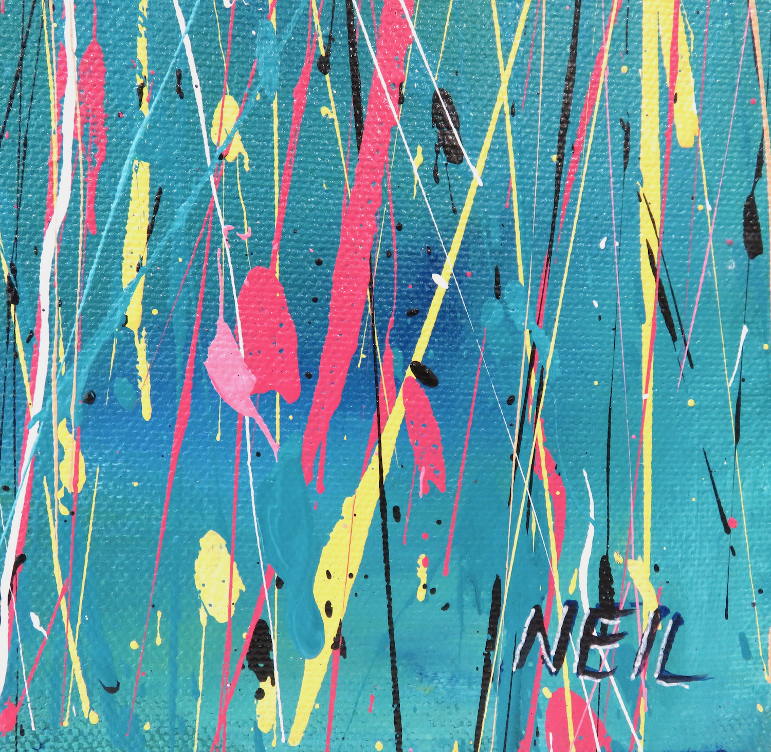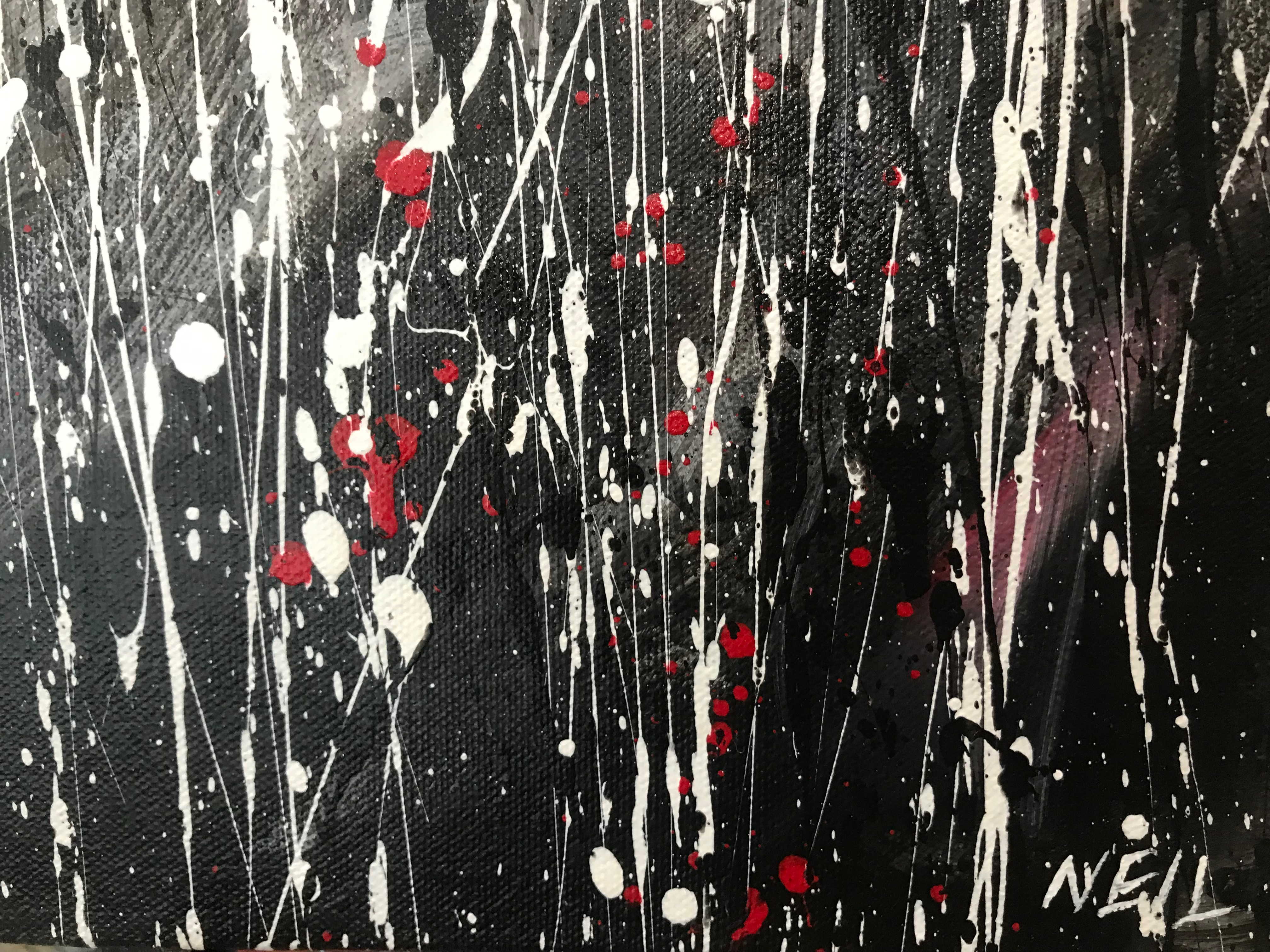This is a part of my splatter art series, they start off as abstract paintings, where I literally just throw paint on a canvas. I love then creating something out of the mess.