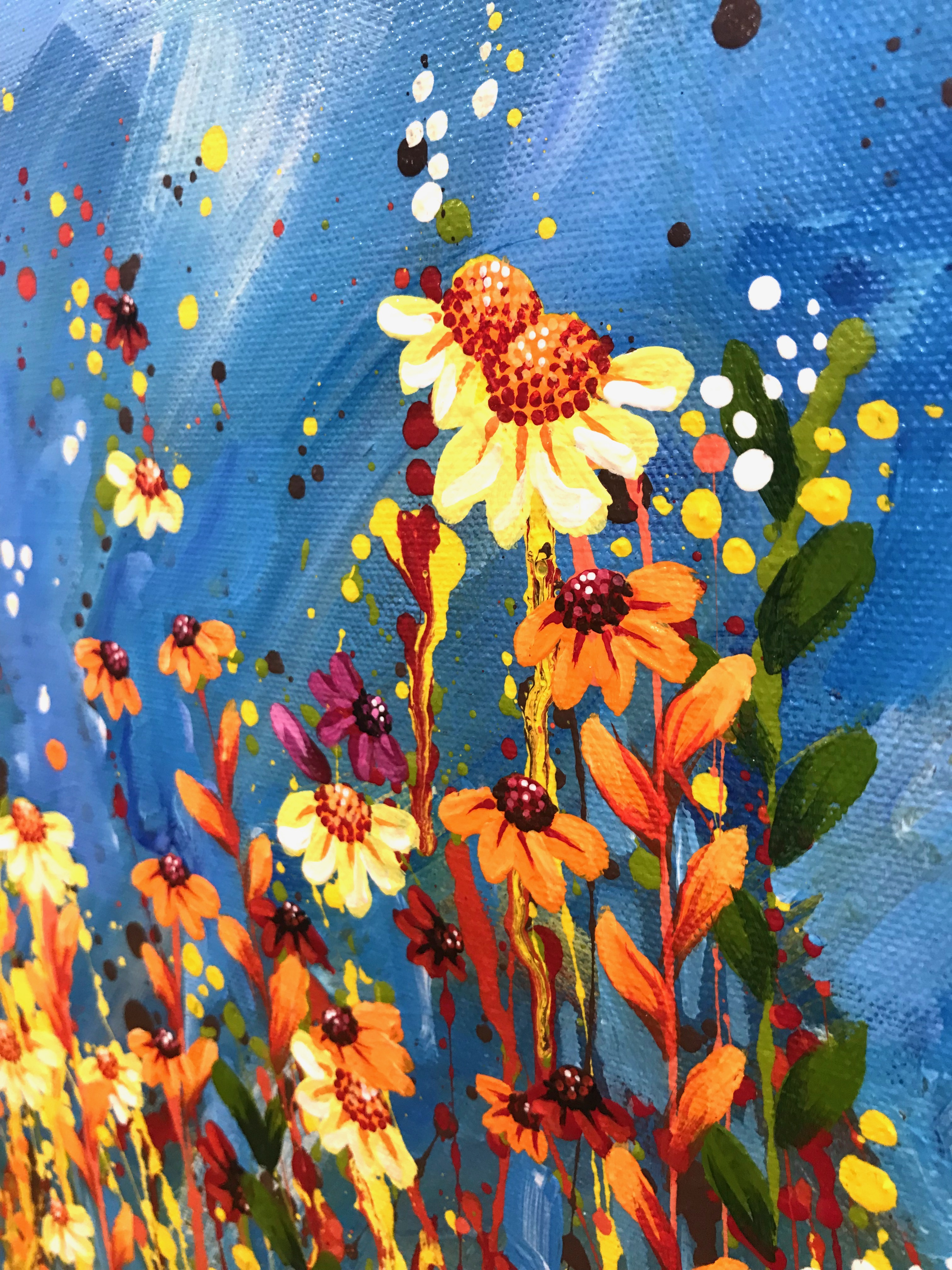 This painting evolved into a statement to them: that what makes them different also makes them interesting. This painting is all the better for that one flower that sticks out.