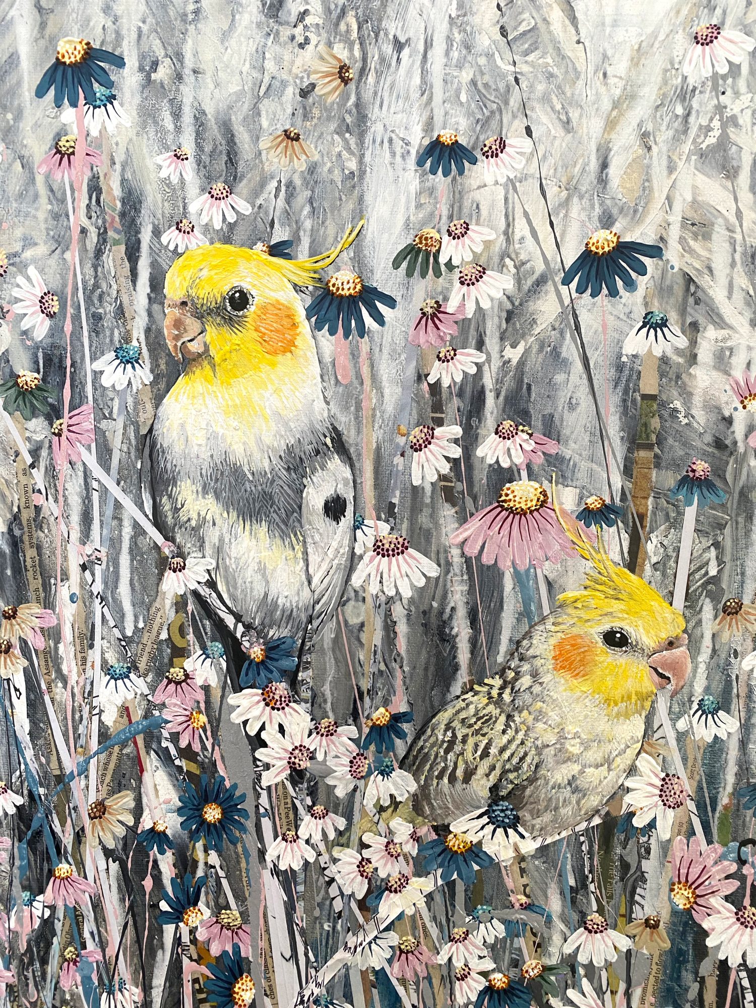 Since finishing this painting I have added to it. I was watching a cockatoo, while on my morning walk and was struck by their audacity. They have this amazing care free attitude that I thought perhaps I could learn from. This one on this particular day, it was covered in mud, and it was having a feed on the nature strip and totally living its best life. It didn’t care less about me, I walked quite close to it and it just one about its breakfast, keeping a vague eye on me, but really not to bothered by my interest in it, definitely not bothered by it being covered in mud. Maybe I could learn something from the audacious cockies.