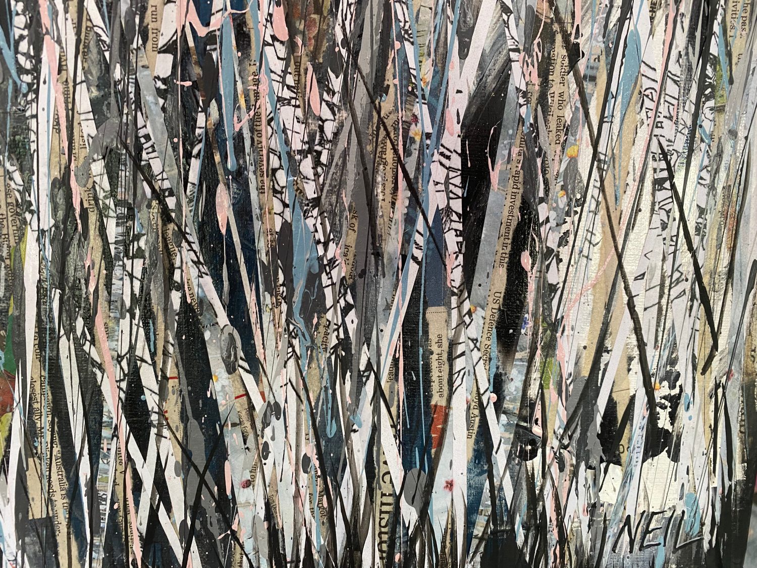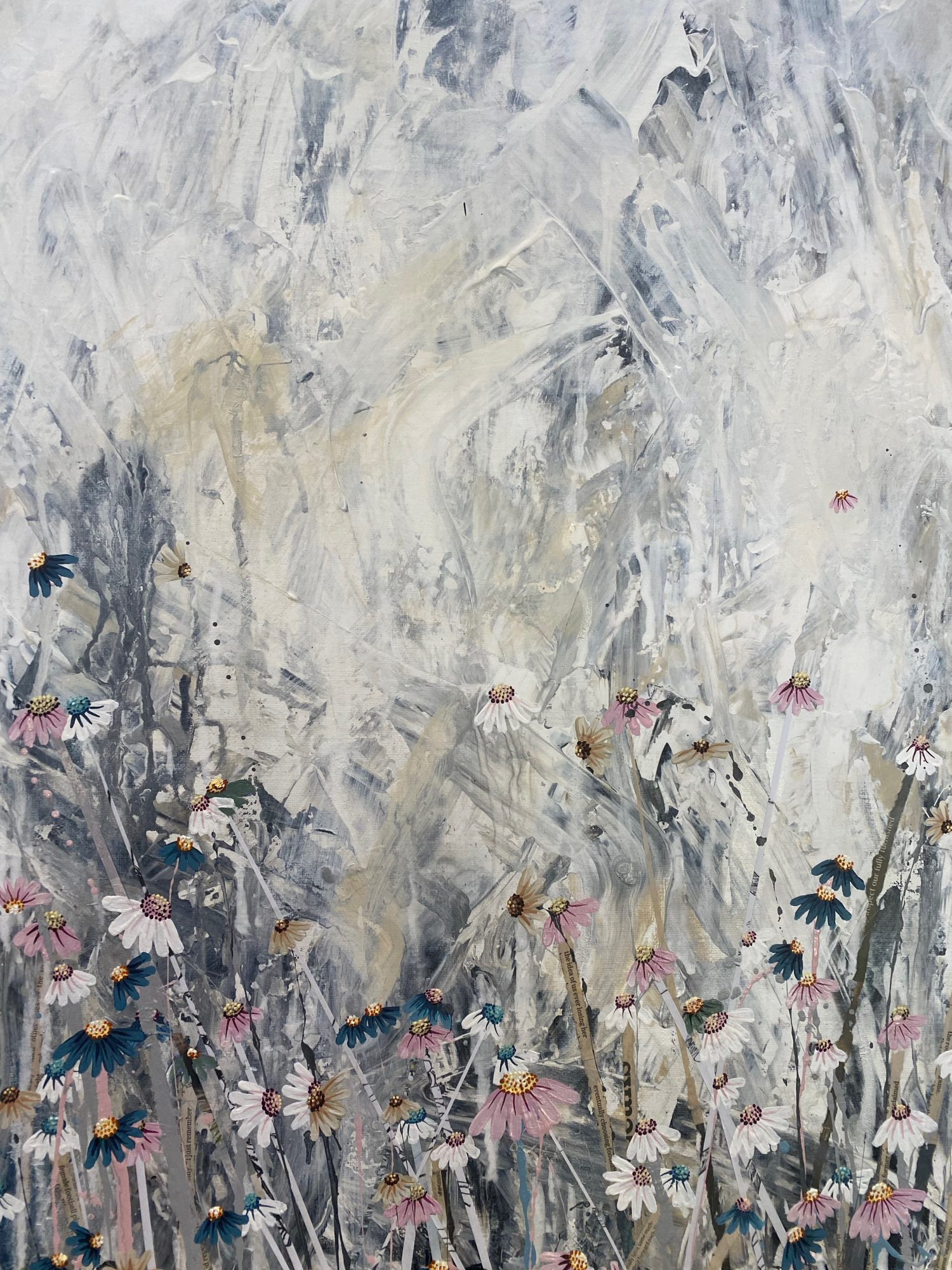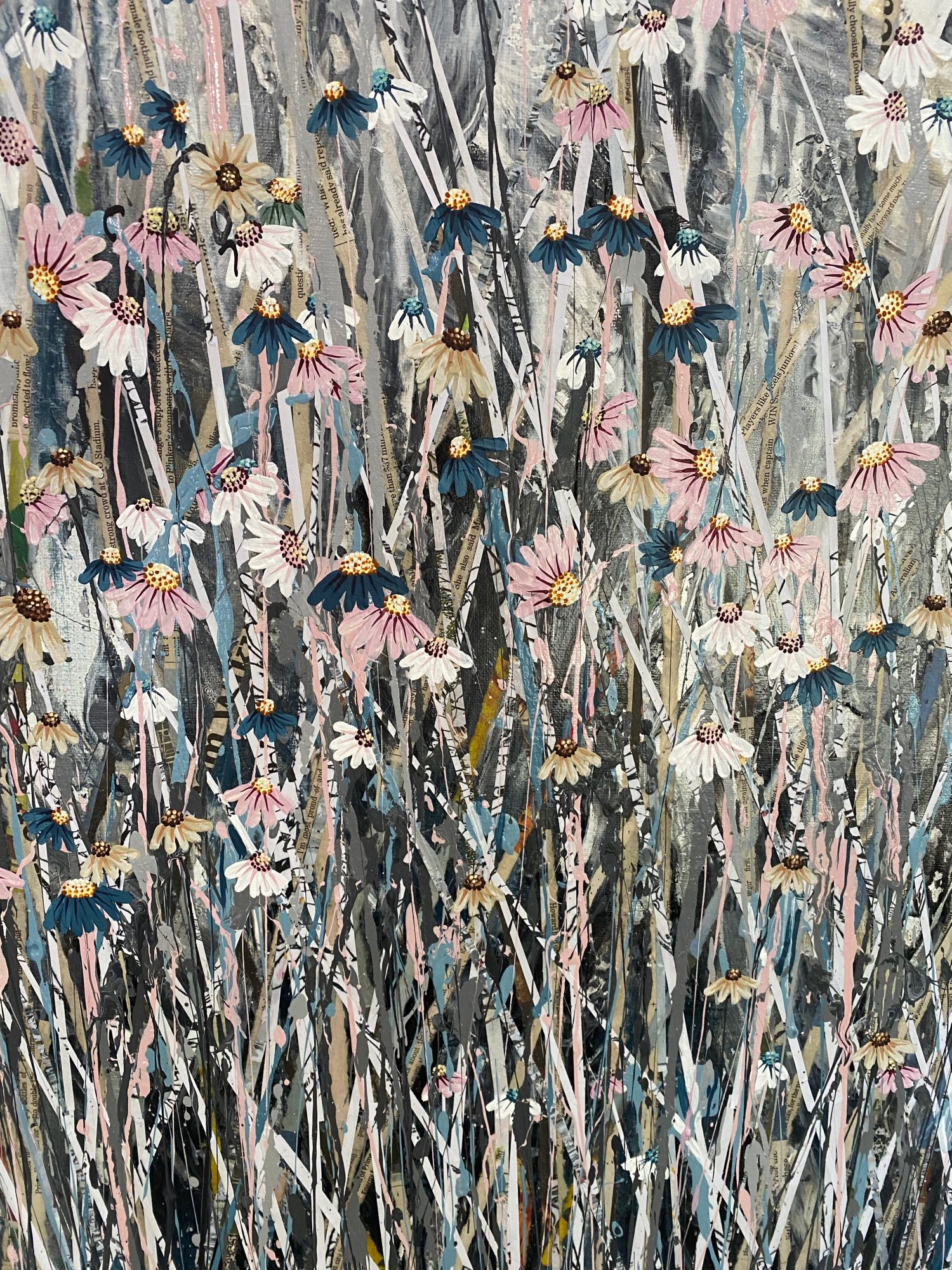 This painting has been about adapting, healing the past, looking toward hope, but seeing joy in the day to day, in the weeds that have abounded in the rain, in the rain itself, in the birds that wake me in the morning. When I stop and listen, moment by moment, I can keep putting one foot in front of another and enjoy the journey.