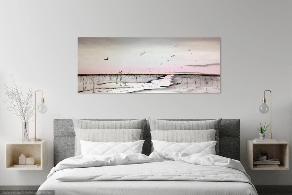 This painting was commissioned to express the comfort my client receives from God despite the storms around her.