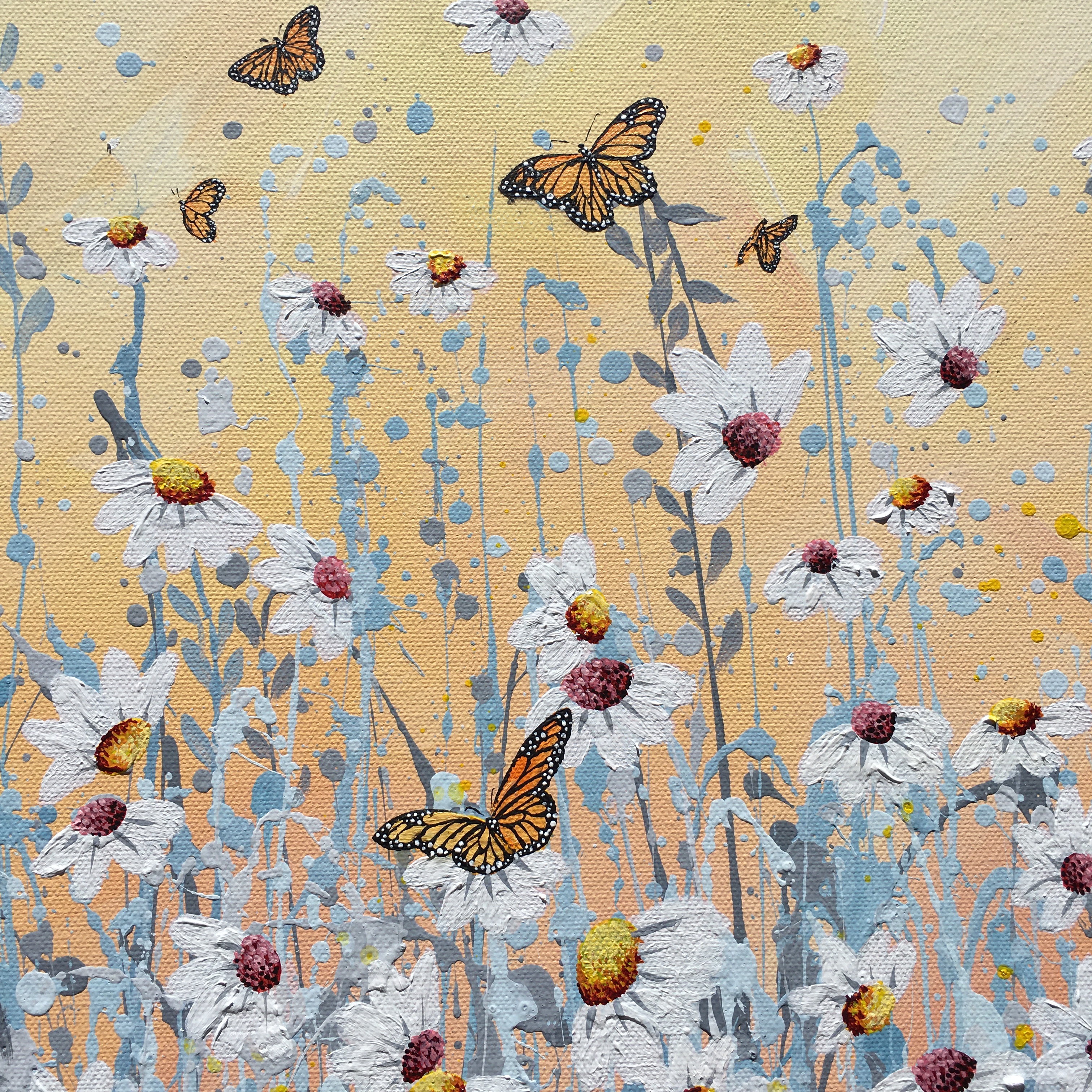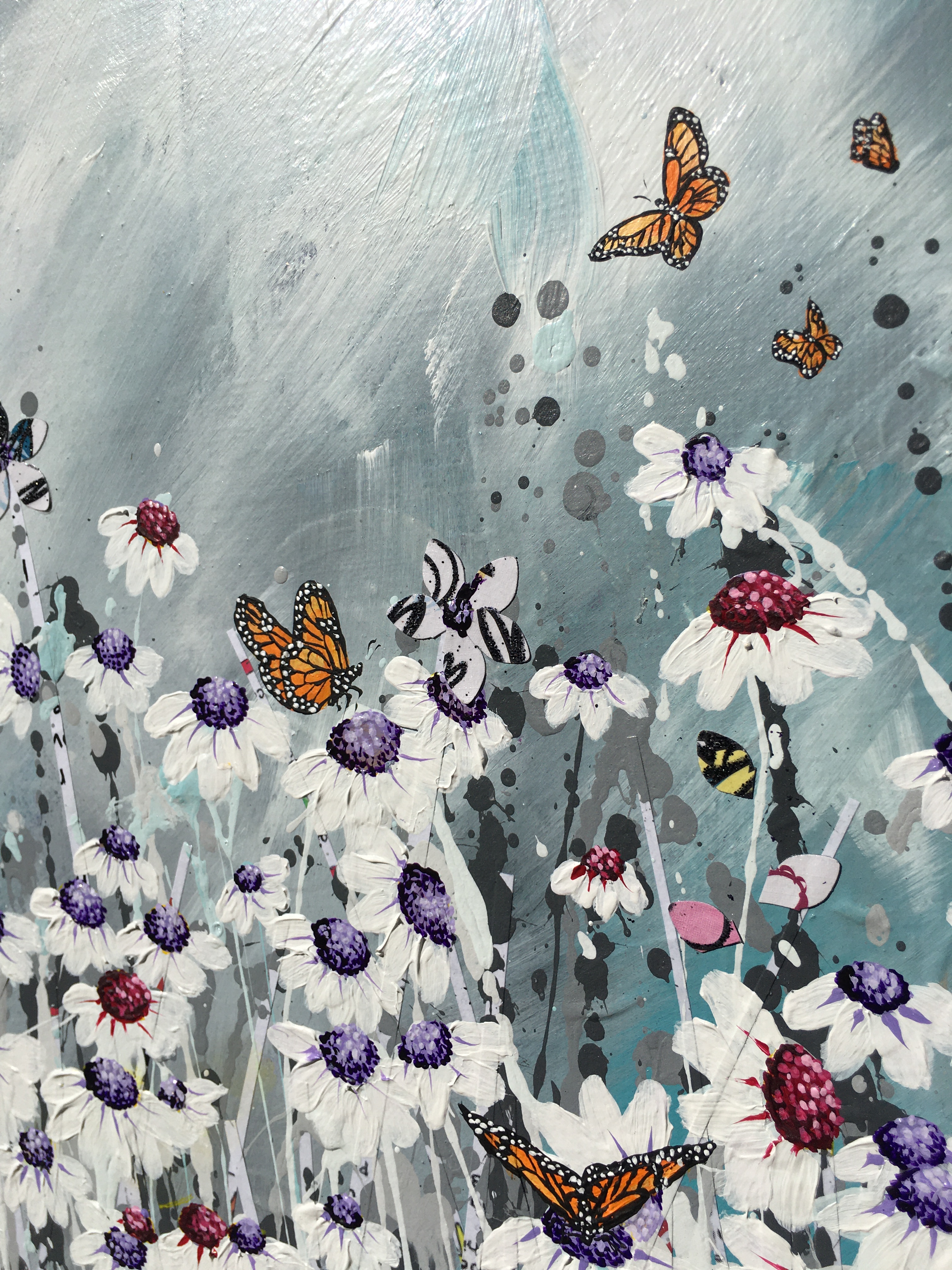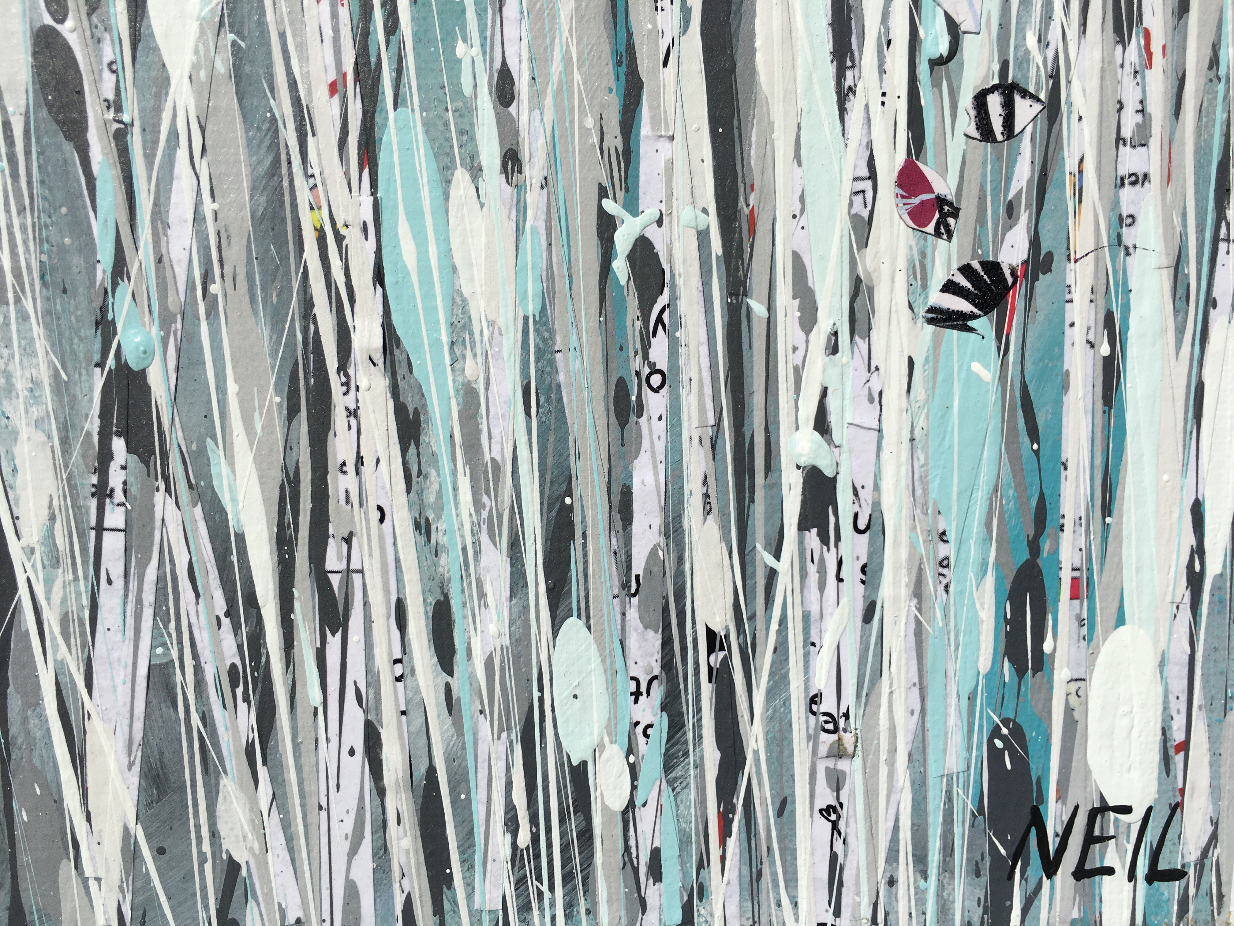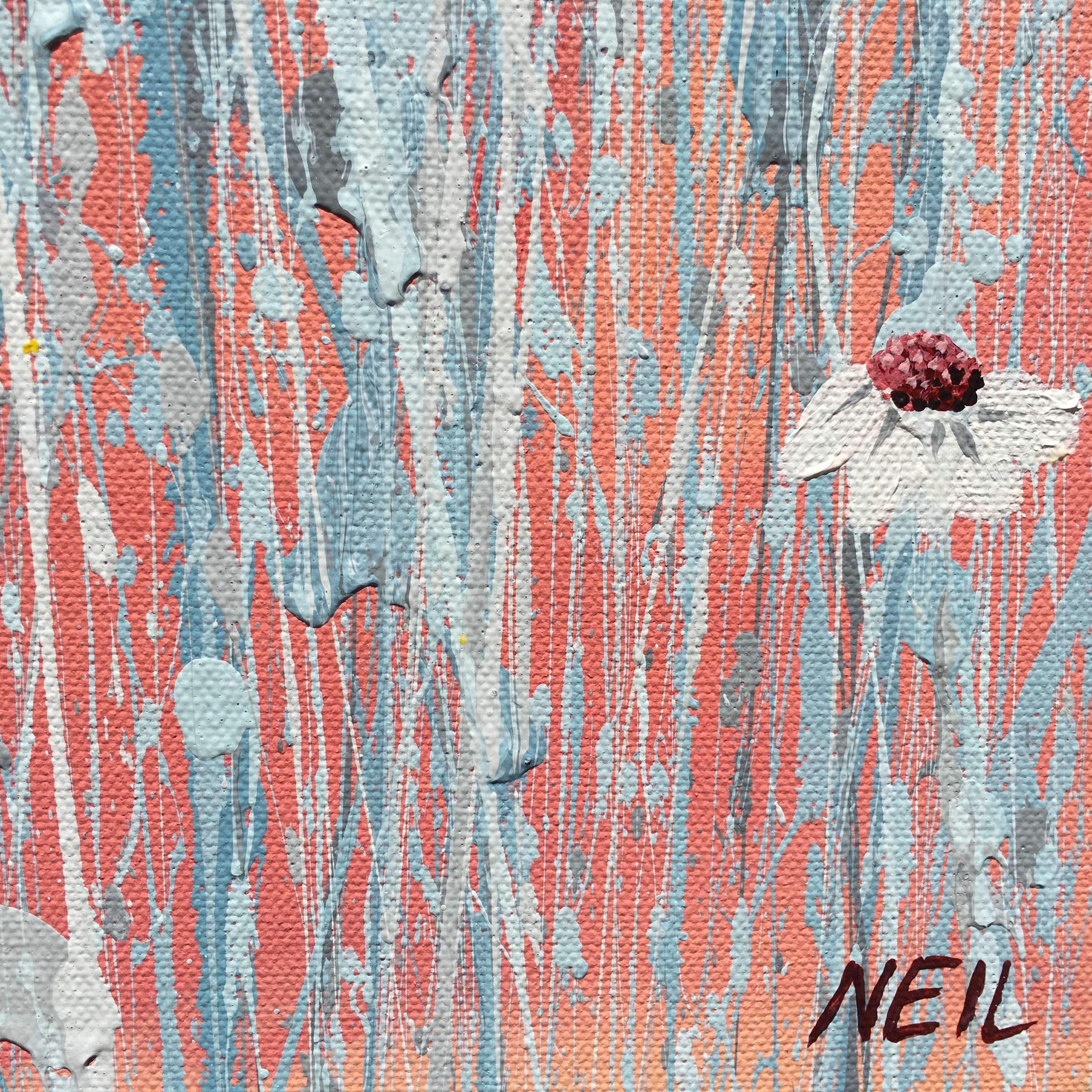 Acrylic on stretched canvas, with painted white Tasmanian oak frame.