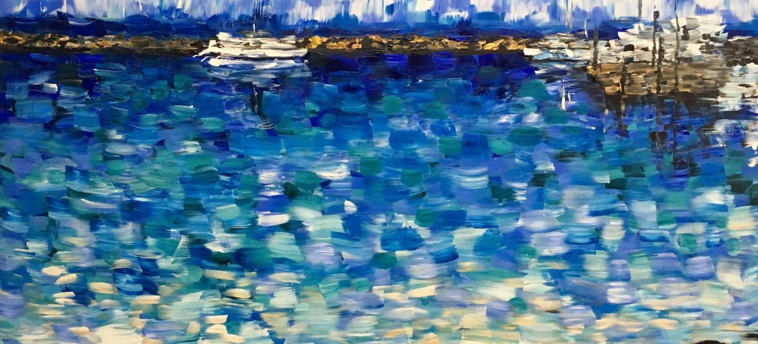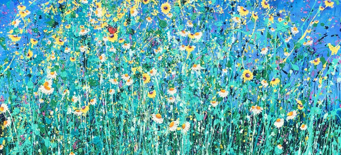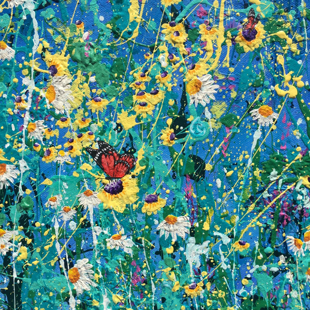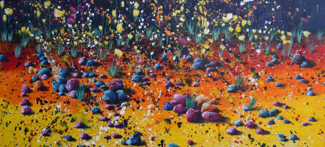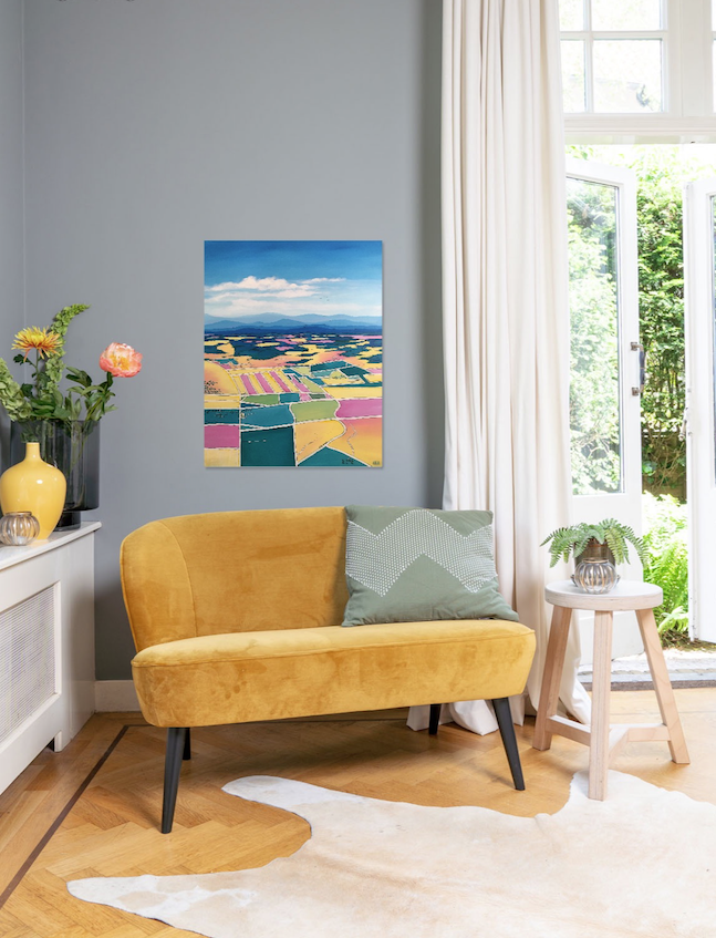 These paintings start off as completely abstract, lots of throwing paint and preparation, but then the colours and shapes are developed into what I can see in the painting.