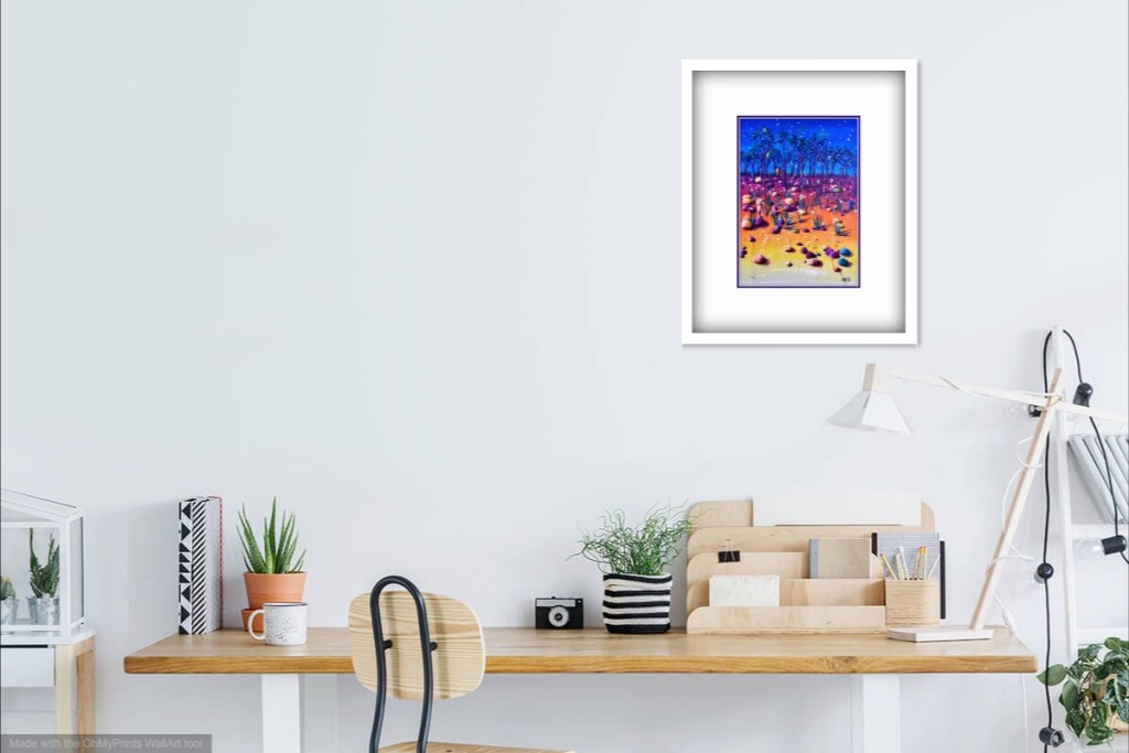 This painting would be beautiful framed with others in the Ink Study range. Spread across the wall of a hall, or a long room.